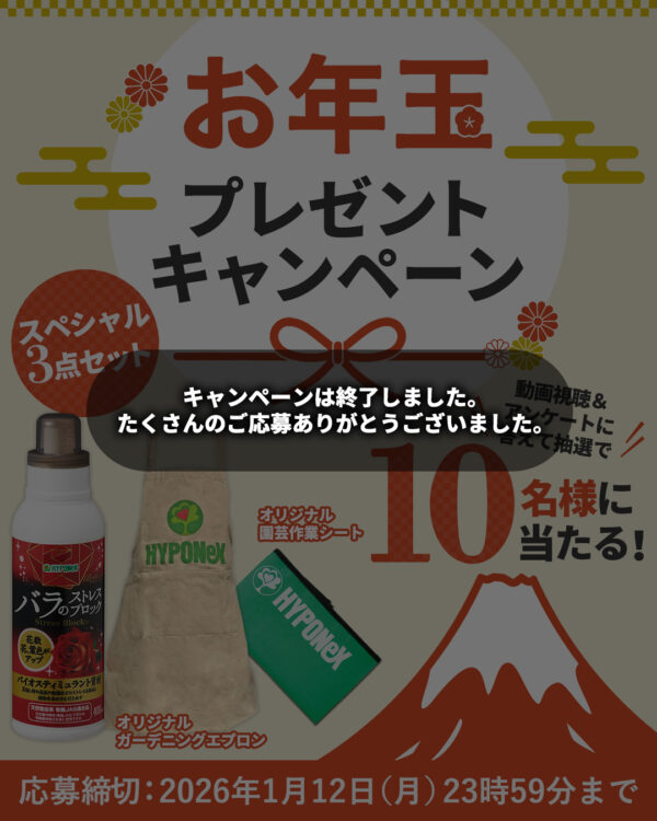バラの葉の色つやを良くし、花と葉の数を増やします。特に秋花に効果的です。
