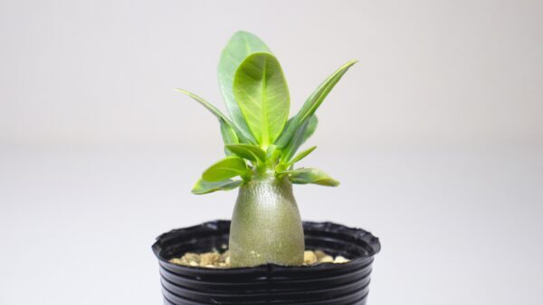 アデニウムはキョウチクトウ科の塊根植物(コーデックス)です。個性的な見た目が特徴で、ぷっくりとした幹や根が目を引きます。ユニーク姿を活かし、盆栽のように楽しむこともできます。