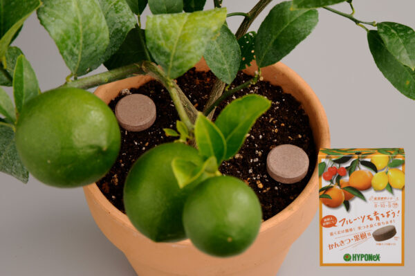 その後は6月頃の開花直後、9月の果実が大きく生長する時期、11月の収穫直後にそれぞれ吸収率が高い緩効性肥料を施しましょう。『錠剤肥料 かんきつ・果樹用』は、早く効く成分と、ゆっくり効く有機質を配合していますので、安定した効果が約1~2ヵ月間持続します。
