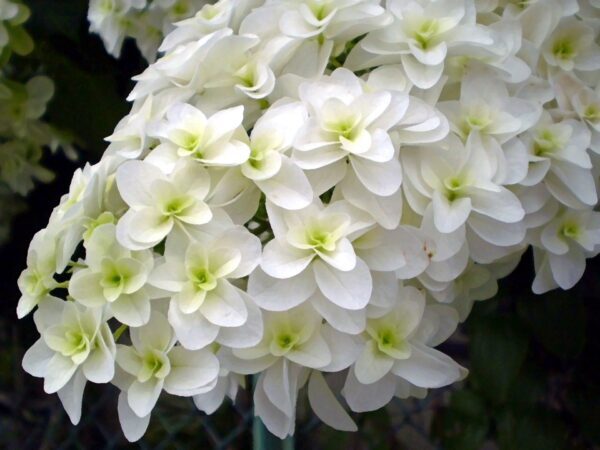 カシワバアジサイの最大の特徴は、大きく豪華な花房です。白い装飾花が集まり、円錐形の花房をつくります。一株植えるだけでも存在感のある姿を楽しめるでしょう。