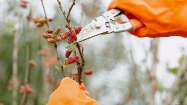 スイートマルベリーの剪定は、健康な成長と果実の質を保つために欠かせない作業です。前年の新しい枝に翌年の花芽がつくため、古い枝は切りましょう。