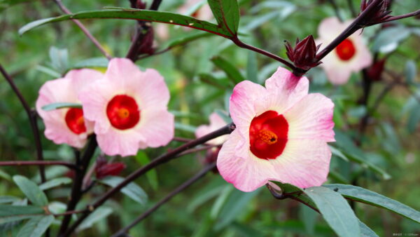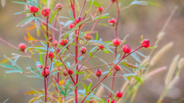 ローゼルは、美しい花や鮮やかな果実、紅葉する葉など、長いシーズンを通じて楽しめる魅力的な植物です。