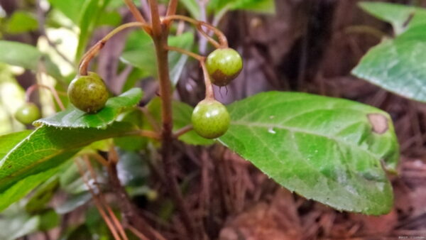 ヤブコウジは生長しても高さが10㎝〜20cm程度にとどまる、非常にコンパクトな常緑低木です。
