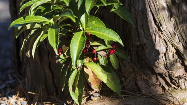 多くの植物が休眠する冬でも、ヤブコウジは赤い実を保ち続けるため、彩りの少ない冬の庭を華やかにしてくれるでしょう。