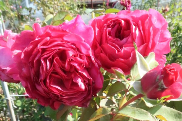 香りの大輪シュラブ。鮮やかなスカーレットピンクのロゼット咲き。花径10㎝。四季咲き。