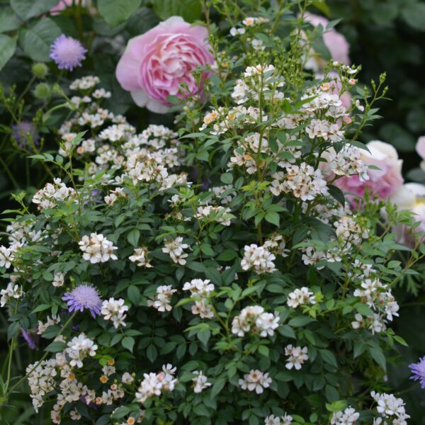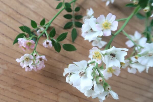 縦に長い房咲きとなる。春に一斉にたくさん咲き、その後少しずつ返り咲く。花とバランスの良いごく小さい葉は耐病性が高い。