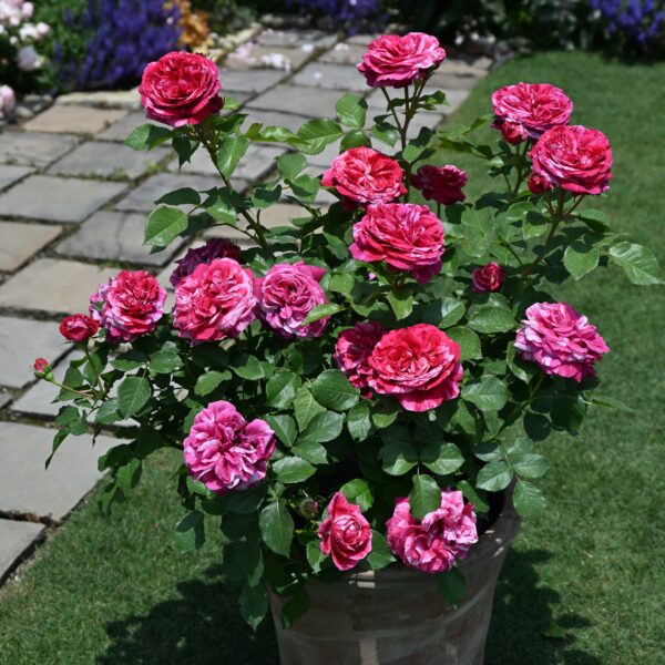 葉は深緑色の照り葉。樹は木立性で高さ1.2m×幅0.8mの半直立性で、樹勢が強く枝葉が良く茂る。鉢植えでも庭植えでも育てやすい。