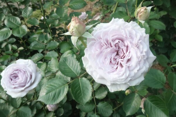 樹は高さ1.2×幅1.0mの木立性でよく茂る。トゲは少なめ。樹勢が強く、葉脈が目立つ青く丸い葉は黒星病に強い。