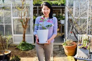 さて、次はクリスマスローズ注目の花です。さまざまな品種を多くの育種家か出されていますが、今回は、東京都府中市で昔からクリスマスローズをつくってきた老舗・花郷園の園主で、多様な楽しみ方を積極的に提案されている野口貴子さんを訪ね、おすすめの品種を見せていただきました。また、お話も聞きました。