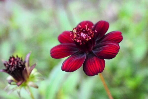 チョコレートコスモスは、黒っぽい茶色や赤色などの濃い花びらを持ち、花姿は一般的なコスモスに似ています。