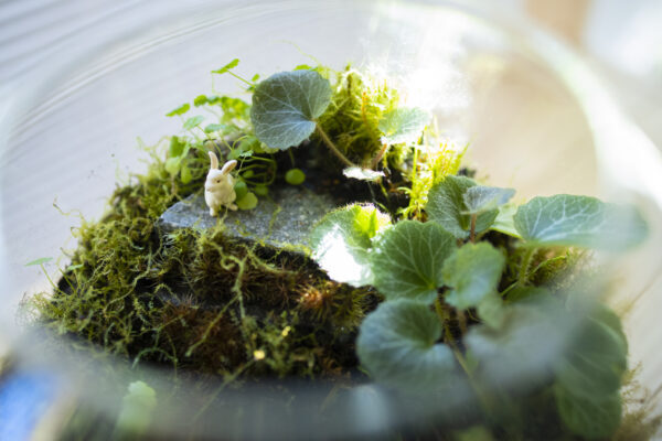 クローズドタイプの容器は蓋をしめたままで管理するため、湿度の高い場所を好む苔が向いています。
