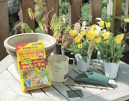 植えつけ・植えかえ時に元肥として土に混ぜ込むだけ!
