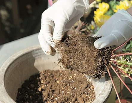 ❸開花苗は根鉢をくずさない