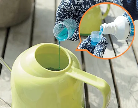❷希釈して、株元に注ぎかける