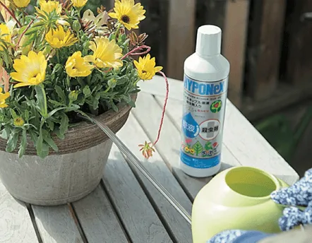 「ハイポネックス原液 殺虫剤入り」は、花き類や観葉植物に使えます。殺虫成分は根から吸収され、効果は約3日~1週間後に。効きめは約1カ月 間持続します。