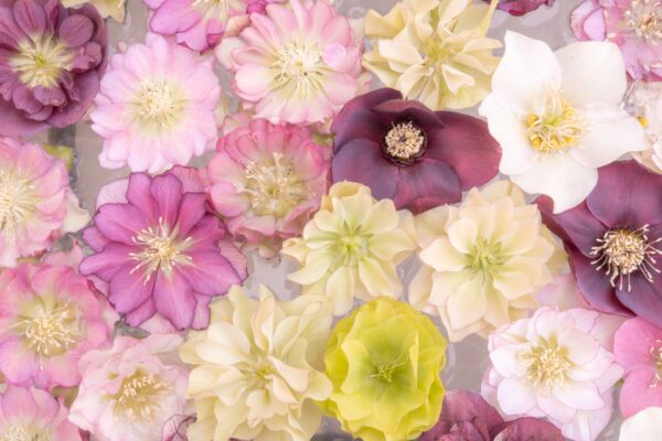無茎種は、根茎から葉柄と花柄が別々に伸びるタイプです。オリエンタリス系ハイブリッドが代表的で、年明けから春にかけて開花します。根は比較的浅く、横に広がる性質があるため、鉢植え栽培にも適しており、品種改良による花色や花形のバリエーションが豊富なのも特長です。