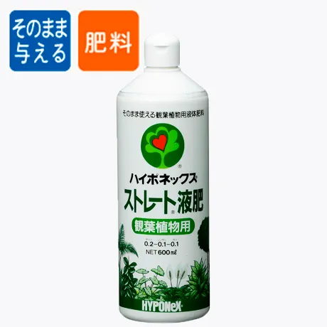 『ストレート液肥 観葉植物用』は簡単にお使いいただけるように、観葉植物が必要とするチッソ・リンサン・カリなどの各種栄養素を含む、すばやく効く清潔な、そのまま使える肥料です。緑をより美しく、鮮やかに育てます。 根からすばやく吸収され、株を丈夫に育てます。