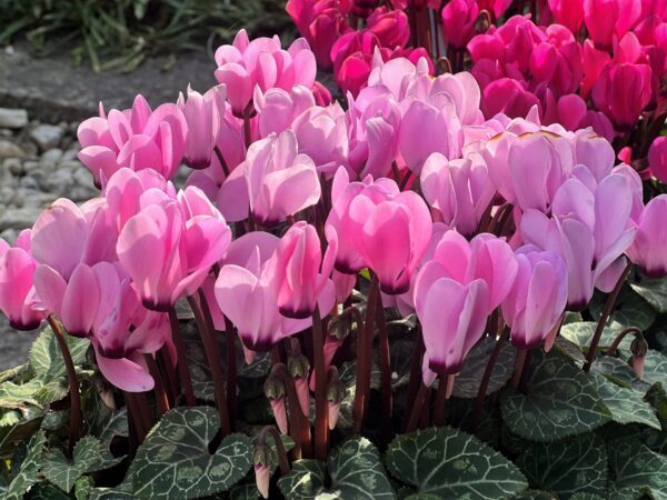 シクラメンの開花は冬が本番です。寂しい冬の庭を華やかにしてくれる存在として、ガーデニングで活躍します。