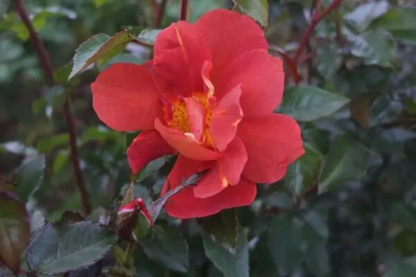 ニュアンスある花色と赤みのある茎・濃緑の照葉の絶妙のバランス