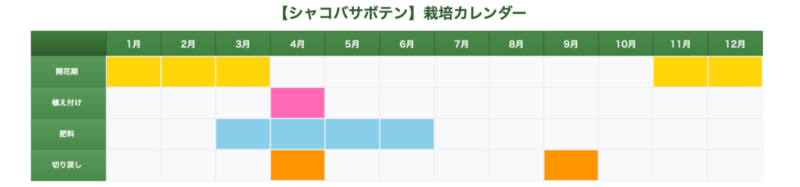1月2月3月4月5月6月7月8月9月10月11月12月開花時期植えつけ・植えかえ施肥