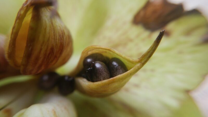 花が終わったクリスマスローズは、中心に種をつくります。熟すと自然と種がはじけてこぼれるため、採種する際は花茎ごと切り取るか、袋をかぶせて自然に落ちるのを待ちます。