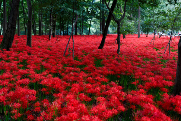 秋の彼岸の時期に、鮮やかな赤色で咲き誇るヒガンバナ。