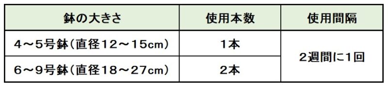 - 植えつけや植えかえをした植物には2週間~3週間後からお使いください。