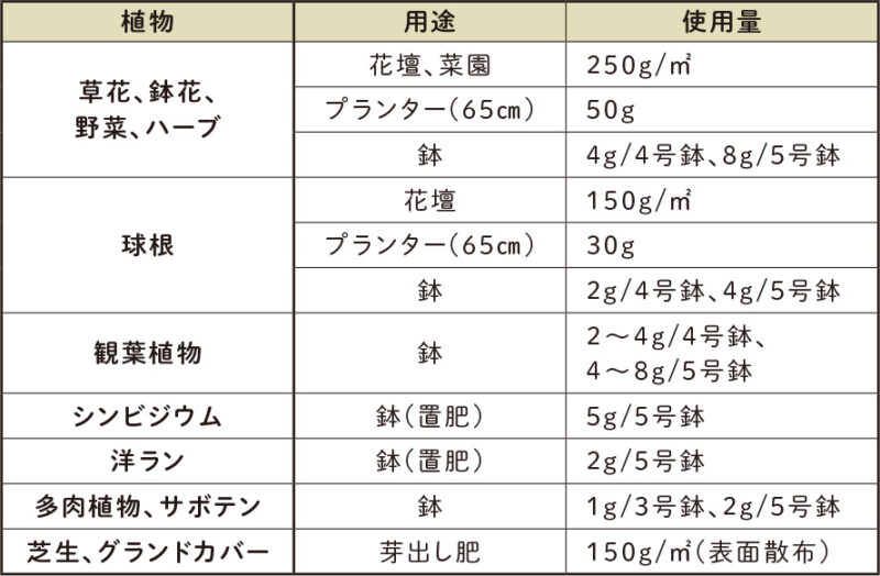 ※用土1ℓあたり2〜8gが使用量の目安です。