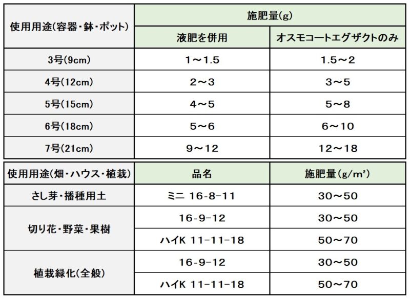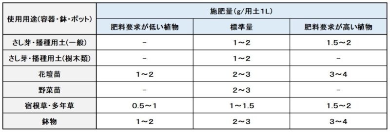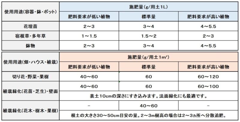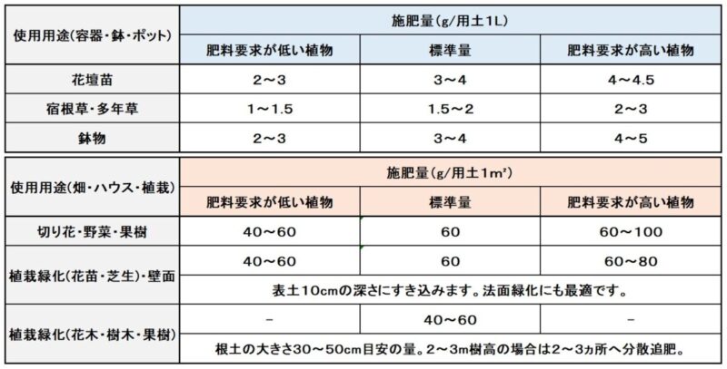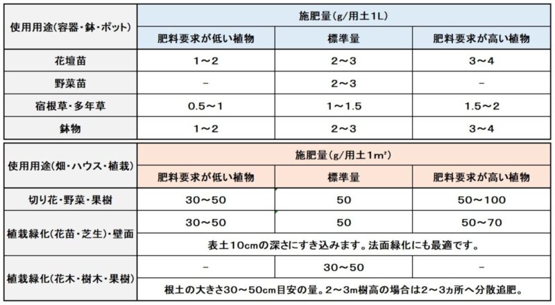 - 施肥方法、施肥量の詳細につきましては、当社までお問い合わせください。