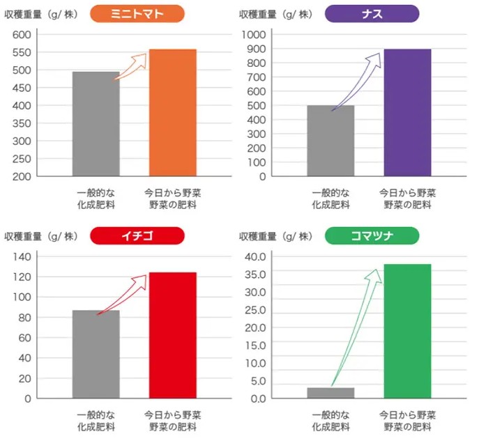 - 野菜の生育に必要な成分と有機成分をバランス良く配合し、おいしい野菜が収穫できます。