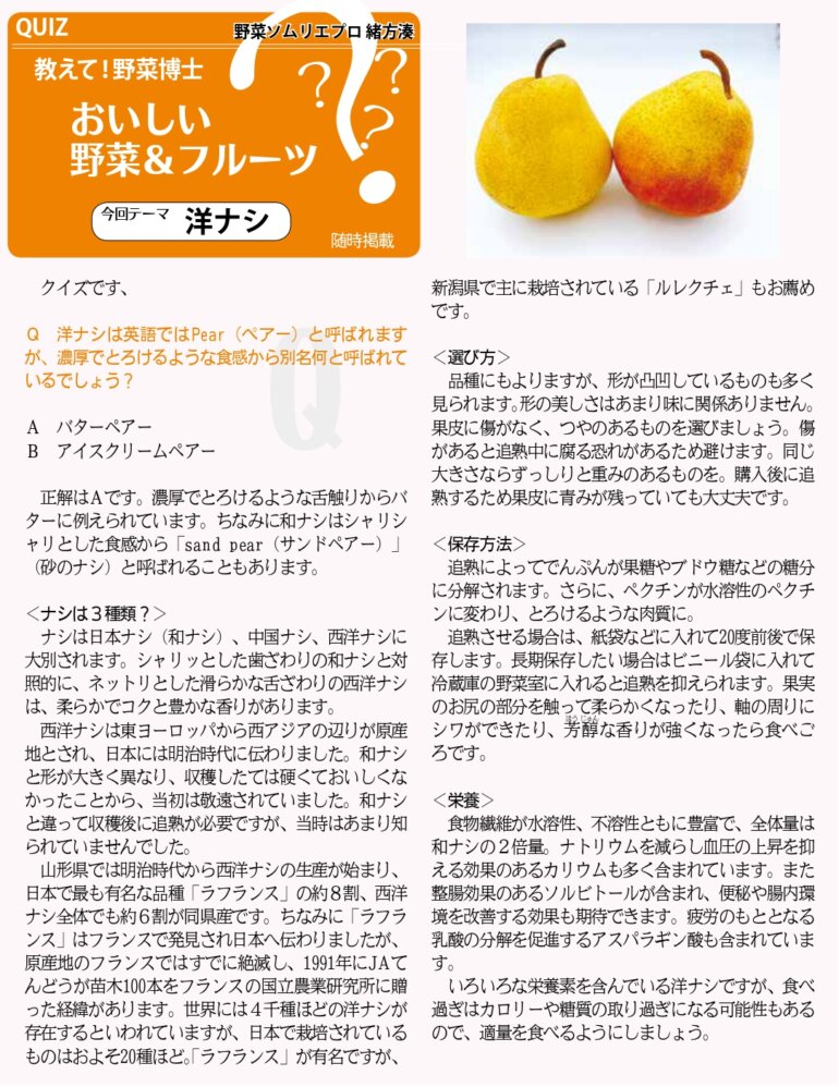2025年10月23日 神奈川新聞「イマカナ」定期連載 #105 洋ナシ