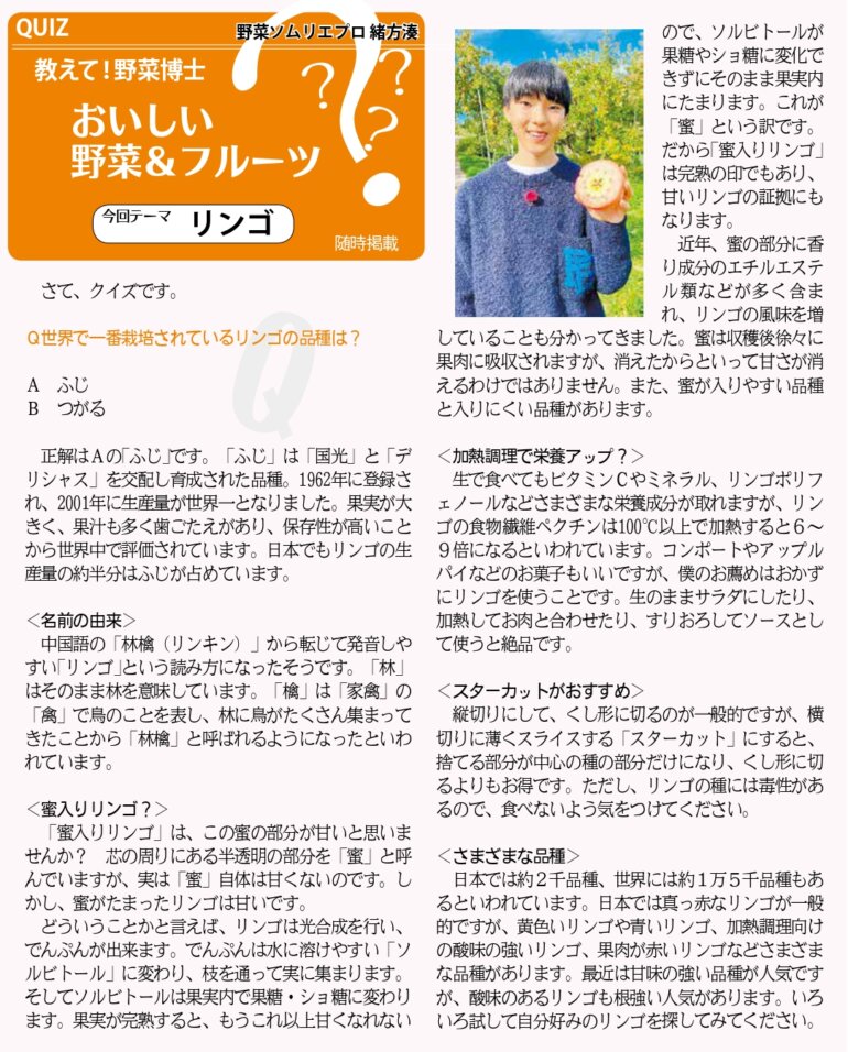 2025年11月20日 神奈川新聞「イマカナ」定期連載 #107 リンゴ